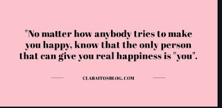 38. “No matter how anybody tries to make you happy, know that the only person that can give you real happiness is ” you”.