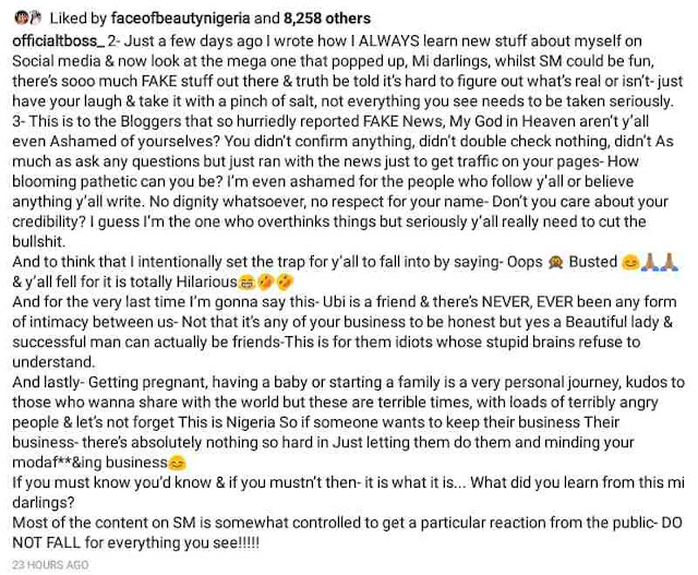 Recall that an Instagram user shared a picture of heavily pregnant Tboss in a private Clinic and the source alleged that she came for antenatal.