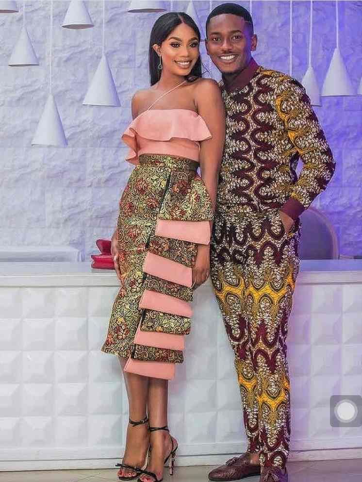 Here, we present to you the Ankara styles for couples. It is not an uncommon practice to see couples wearing matching outfits. Most African couples like to wear native attires for their traditional wedding, engagement ceremony, naming ceremony, pre-wedding shoot and even as a guest in White wedding. When couples wear the same or similar outfit, it makes them look stunning and more beautiful.