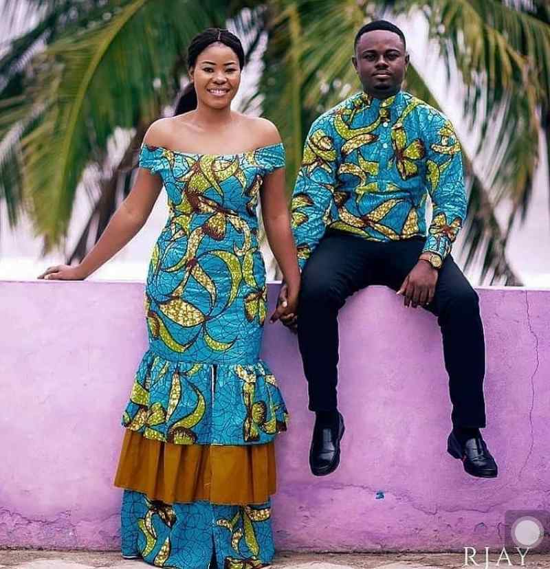 This style makes couples look formal and also classy at the same time. It comes with a lot of choices for the men mostly in terms of trousers where they can wear their jackets with either a plain trousers, jeans or even an Ankara trousers The ladies can equally wear a gown or a skirt and blouse. You can use this style as a pre-wedding photoshoot or even to attend other occasions.