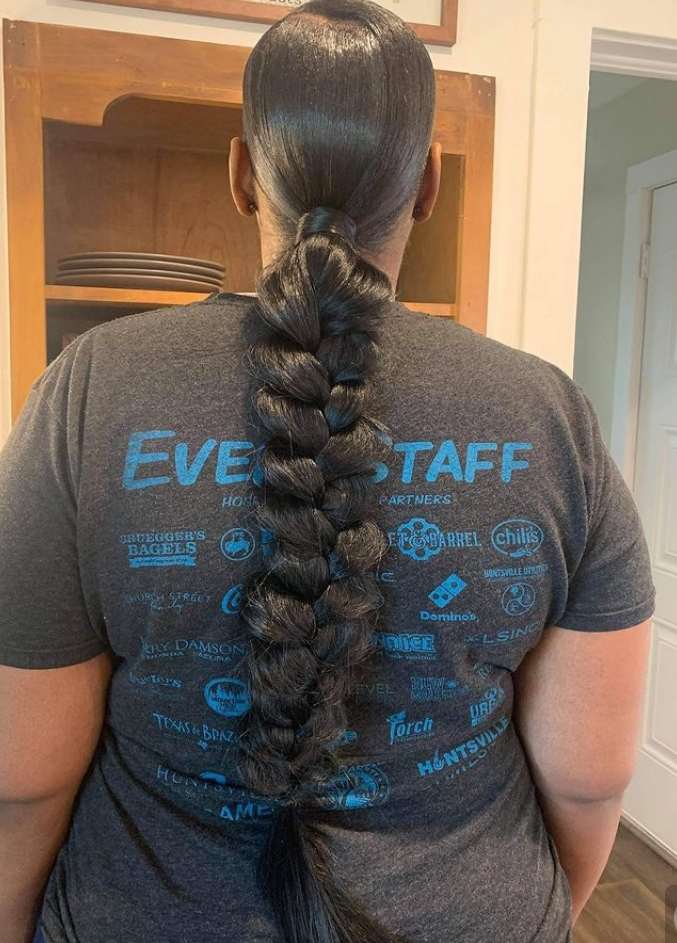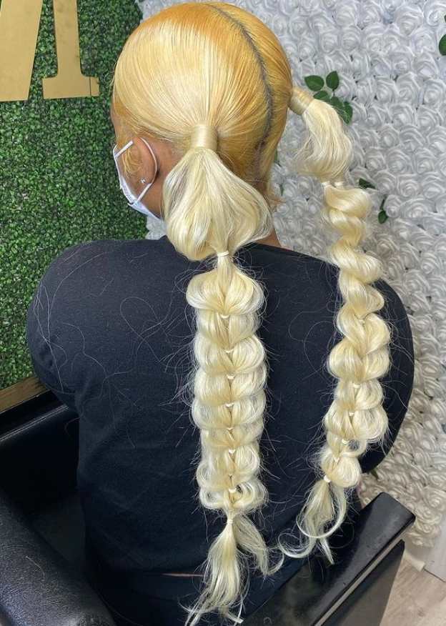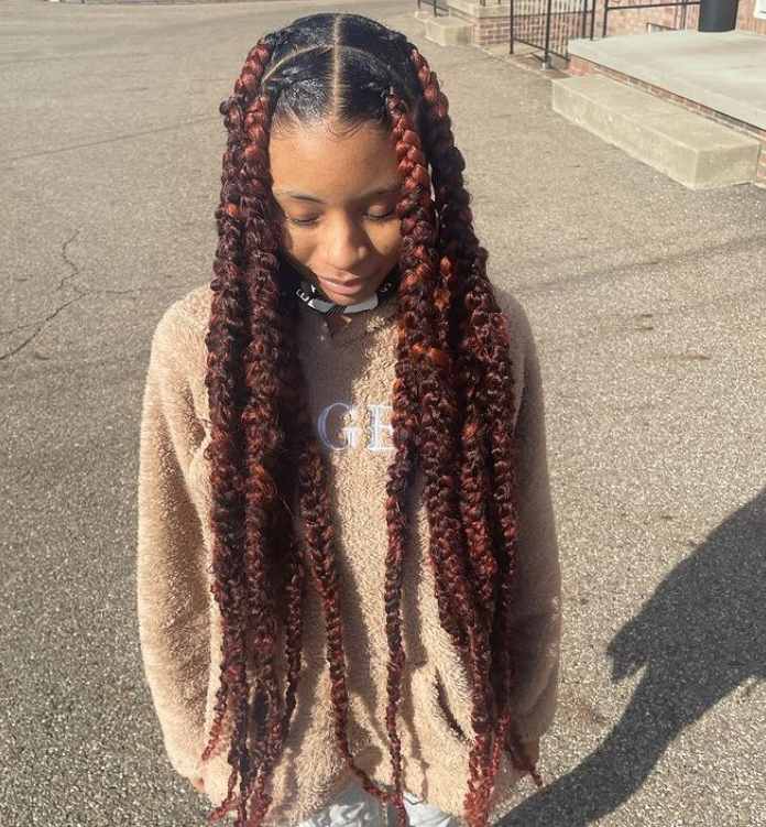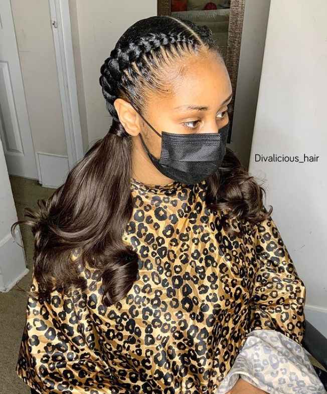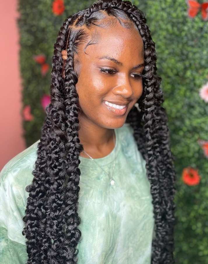 This hairstyle mimics Mohawk braiding style. The large braids may be left as free flowing or wrapped at the centre of the head. This is a great hairstyle for classy ladies.