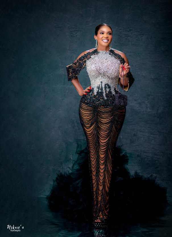 Veekee James made a royal entry with her custom-made Ash gown. This was one of her looks that made her stand out from the crowd.