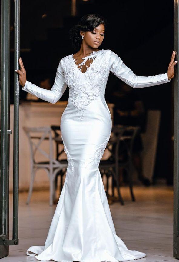 Ladies are really going for long gowns with side split, this looks nice because it makes them the “real owner of the day.” Appear bold and gorgeous and earn all the respect that you desire for your day. For a more gorgeous look, you can attach a side veil to your long gown style.