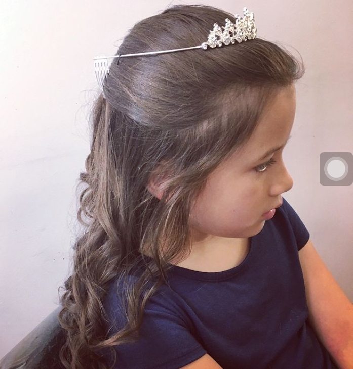 Textured curls is also among the beautiful hairstyles that I will recommend for junior bridesmaids. The fancy hair band looks complements well with this hairstyle.