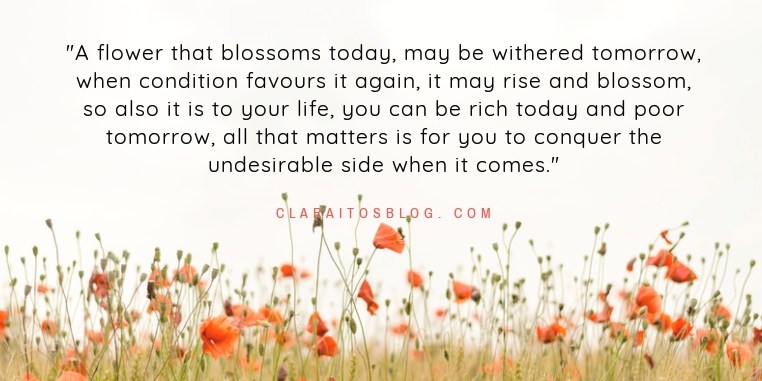 15. “A flower that blossoms today, may be withered tomorrow, when conditions favours it again, it may rise and blossom again, so also it is to your life, you can be rich today and poor tomorrow, you can be happy today and unhappy tomorrow, all that matters is for you to conquer the undesirable sides when it comes.”