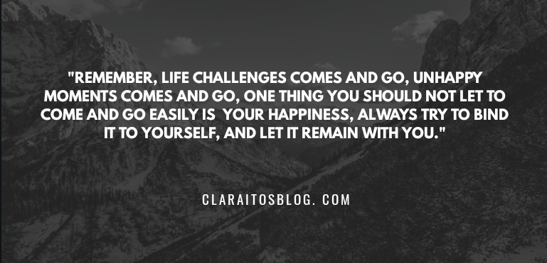6. “Remember, life challenges comes and go, unhappy moments comes and go, one thing you should not allow to vaporise easily is your happiness, always bind it to yourself, try as much as possible for it to remain with you.”