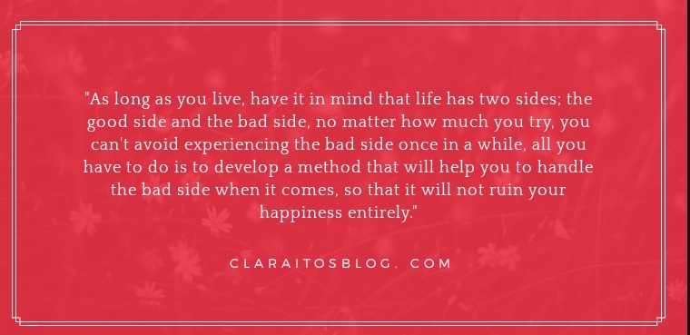 22. “As long as you live, always have it in mind that life has two sides; the good side and the bad side, no matter how much you try, you can never avoid experiencing the bad side once in awhile, so what you have to do is to develop a method that will help you handle the bad side when it comes.”