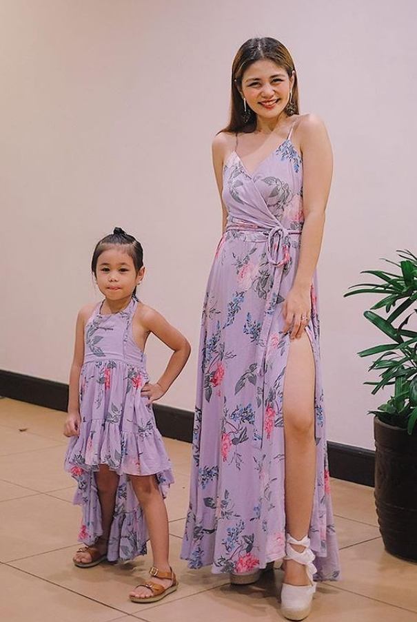 Floral fabrics will also be suitable for you and your daughter. Give it a good styling and enjoy the look. You can also incorporate other plain color fabrics to it.