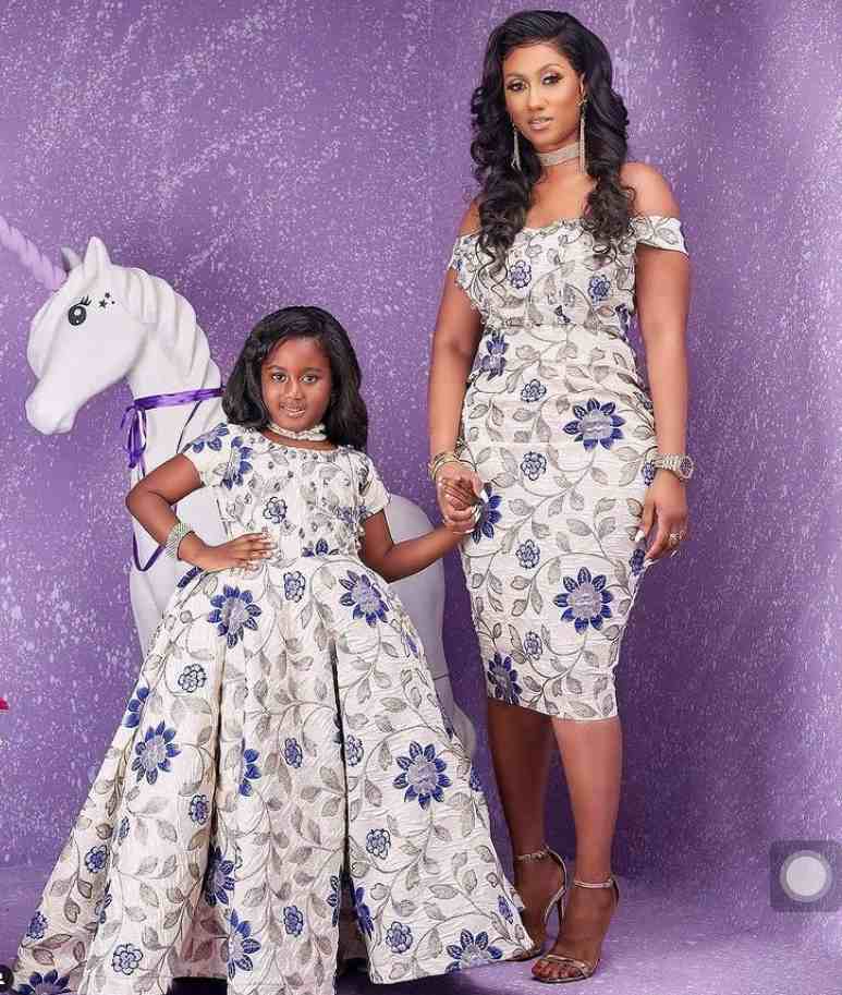 In some cases, you can choose the same style for you and your daughter, but sew it in different styles. We discovered that styles such as Bubble styles, ball gowns, tulle styles and multilayered gowns and skirt and blouse styles are giving our little girls an adorable look, you can go for these styles or choose another style for her. You can also add other plain fabrics such as organza and chiffon for a more awesome look.