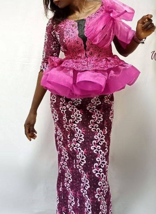 Peplum lace styles really looks gorgeous. A great fit for weddings and other occasions. Peplum refers to a short gathered fabrics that is being attached to the waist of a cloth. Peplums can be attached in gowns, blouses and jumpsuits. This Style gives ladies a more beautiful, fuller and stylish look. It can be attached round the cloth or at any other chosen side.